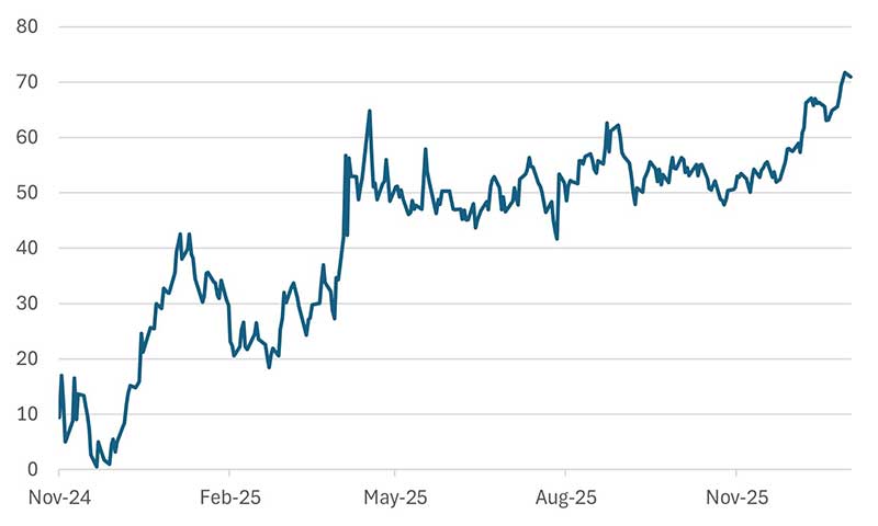 Precious metals continue to offer reassurance in a world marked by geopolitical strain and institutional uncertainty, and further upside in gold and silver remains plausible. Beyond that, strategic commodities such as copper are benefiting from competition for supply driven by electrification, data infrastructure, and energy transition policies. Without investment in the grid, there will be no consumption of the data from AI or no AI data produced. At current levels of grid investment, the AI snake will eat itself. Grid investment, secure, reliable, power supplies and energy reserves look to be a very safe investment theme. Did anyone mention Venezuela? We have run an infrastructure strategy successfully for many years to focus on this opportunity.