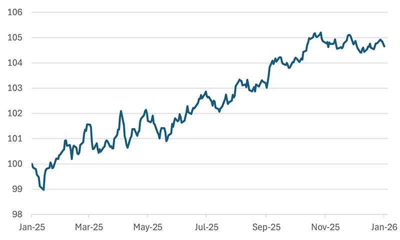 Government bonds are likely to have a muted outlook in the absence of economic stress. Sometimes muted is good! Bond returns in 2025 were respectable in real terms but unremarkable relative to equities, and 2026 is likely to see returns gravitate towards the running yield in a world where core sovereign yields are clustered broadly in the 3-5% range. High debt-to-GDP ratios across developed markets are a pressing concern, placing upward pressure on term premia and limiting the scope for sustained bond rallies. In some cases, governments are struggling to bring deficits under control, as in France; in others, markets appear willing to tolerate a degree of benign neglect (aka the Big Beautiful Bill), as in the United States. The wild card is Germany whose strong sovereign balance sheet was always the anchor for the Euro, but the Merz left leaning government appears to be on a tax and spend trajectory and while corporate tax cuts and accelerated depreciation allowances are favourable and welcome, the regulatory headwinds imposed by Brussels are not. If you think President Trump has opposition to change then Chancellor Merz has that in spades.